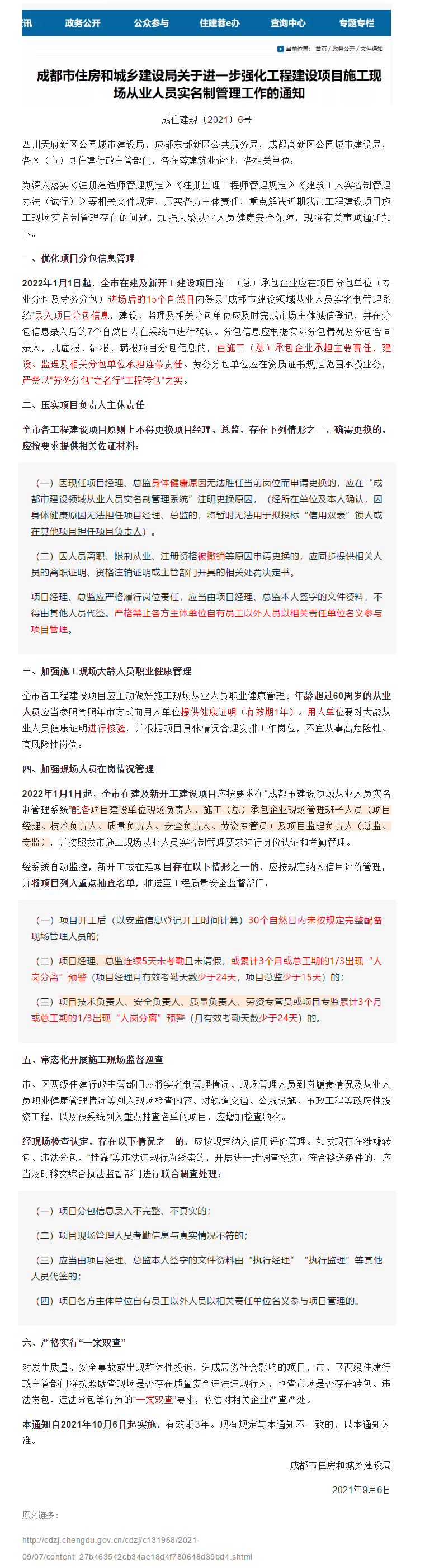 10月6日起,施工現(xiàn)場60周歲以上人員需提供健康證明(有效期1年)方可上崗!該地明確