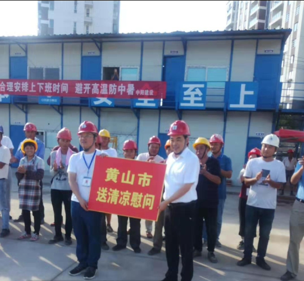 7月29日,黃山市市長孔曉宏帶領市政府工作人員冒著高溫來到由我司監(jiān)理的玉屏齊云府四期工程項目現(xiàn)場,對一線工人、監(jiān)理人員開展送清涼慰問。詳細詢問和了解職工們的生產(chǎn)、生活等情況,加強安全教育,進一步提升建筑工人、監(jiān)理人員高溫期間的自我保護意識,落實各項高溫季節(jié)勞動保護規(guī)定,切實維護職工的健康權(quán)益;并對職工冒酷暑、戰(zhàn)高溫堅守崗位作貢獻表示敬意。同時對企業(yè)在項目建設中的難題進行詳細詢問和深入了解,要求企業(yè)合理安排作業(yè)時間,采取“錯時施工”,避開高溫時段,發(fā)放足量的防暑降溫用品,供應充足衛(wèi)生的飲用水,嚴禁違章作業(yè)和高溫時段作業(yè),確保高溫期間的施工安全。