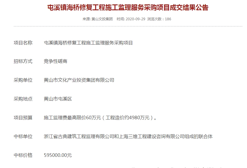 本項(xiàng)目在經(jīng)過正規(guī)招投標(biāo)程序后確定由我司進(jìn)行監(jiān)理咨詢服務(wù),我司將堅(jiān)決秉承優(yōu)質(zhì)工程、三維“智”造的企業(yè)理念,勵(lì)志將屯溪鎮(zhèn)海橋(老大橋)修復(fù)項(xiàng)目做成優(yōu)質(zhì)工程、精品工程。