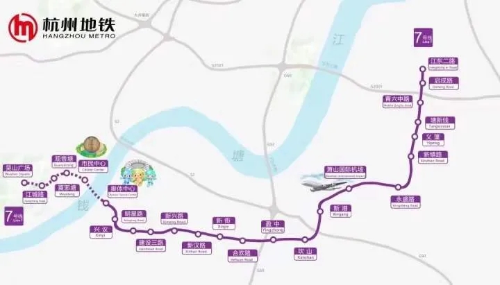 地鐵7號線首通段:起于奧體中心站止于江東二路站,全長約39.3公里,設(shè)19座地下站,其中換乘車站5座。