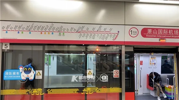 10:47,都市快報記者坐上了地鐵1號線3期的第一班車。即使現(xiàn)在是正午時間,車上人依舊很多,看來大家對開往蕭山國際機(jī)場的線路還是很熱情的。