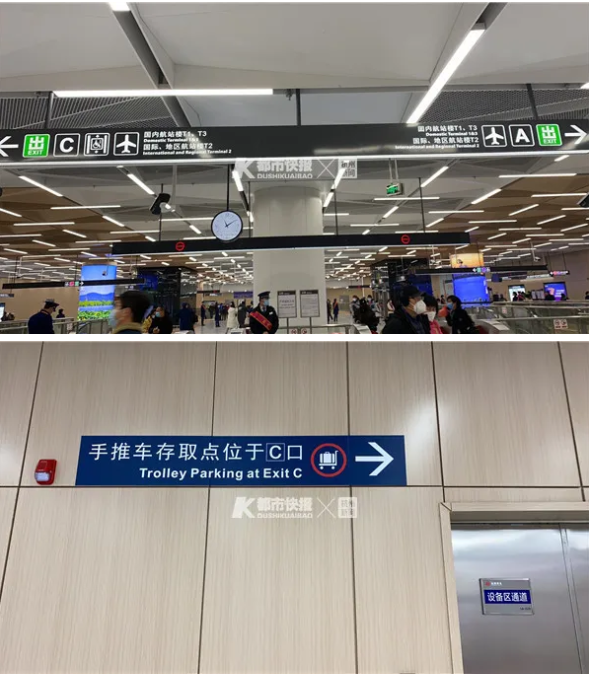 據(jù)項目工作人員介紹,因為沒有預(yù)留的位置,T1、T2、T3這3個航站樓內(nèi)部沒有設(shè)地鐵出入口,但接駁非常方便,從地鐵站出來只需步行幾分鐘即可達(dá)到T3航站樓,不用風(fēng)吹日曬,基本可以實現(xiàn)無縫銜接。設(shè)計的出入口距離T3航站樓不到100米,就在原機(jī)場大巴的候車點(diǎn),正對14號門,出口左手邊就是航站樓里的肯德基餐廳,十分顯眼。