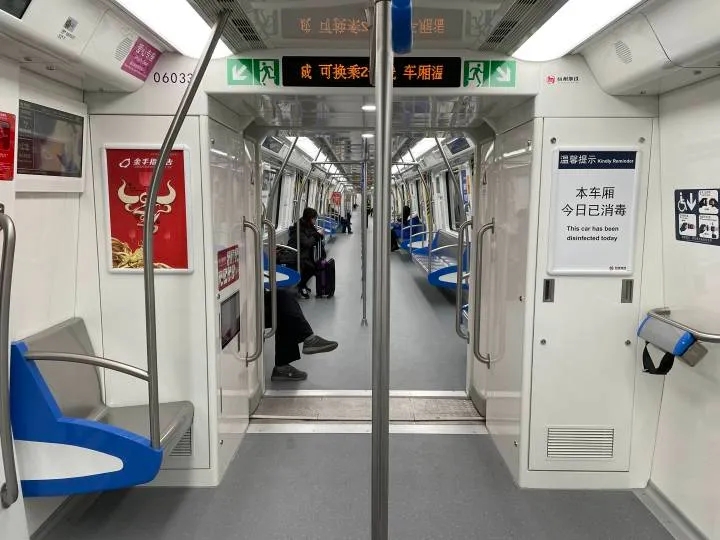 6號線使用的列車是A型車杭州定制版,相比一般的A型車(7號線)更加小巧,但又比B型車(1號線)更加寬敞,列車的容納量相比一號線有25%的提升,大約可容納2300人。除了能乘載更多人,6號線在車內(nèi)環(huán)境也有顯著提升。