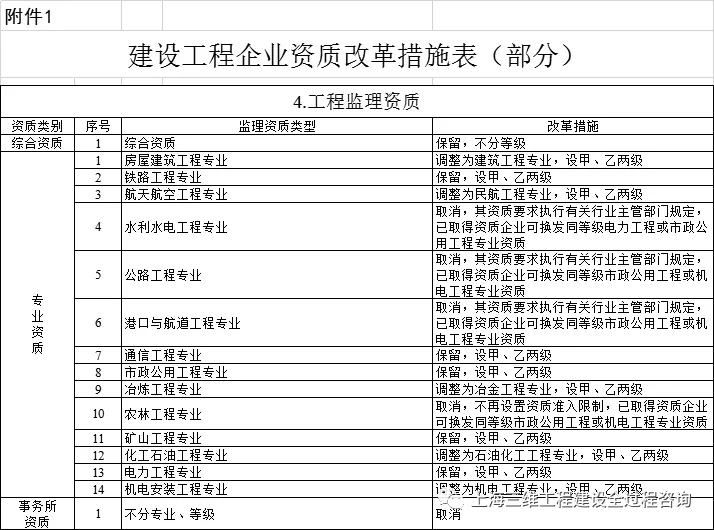 附件:1.建設(shè)工程企業(yè)資質(zhì)改革措施表