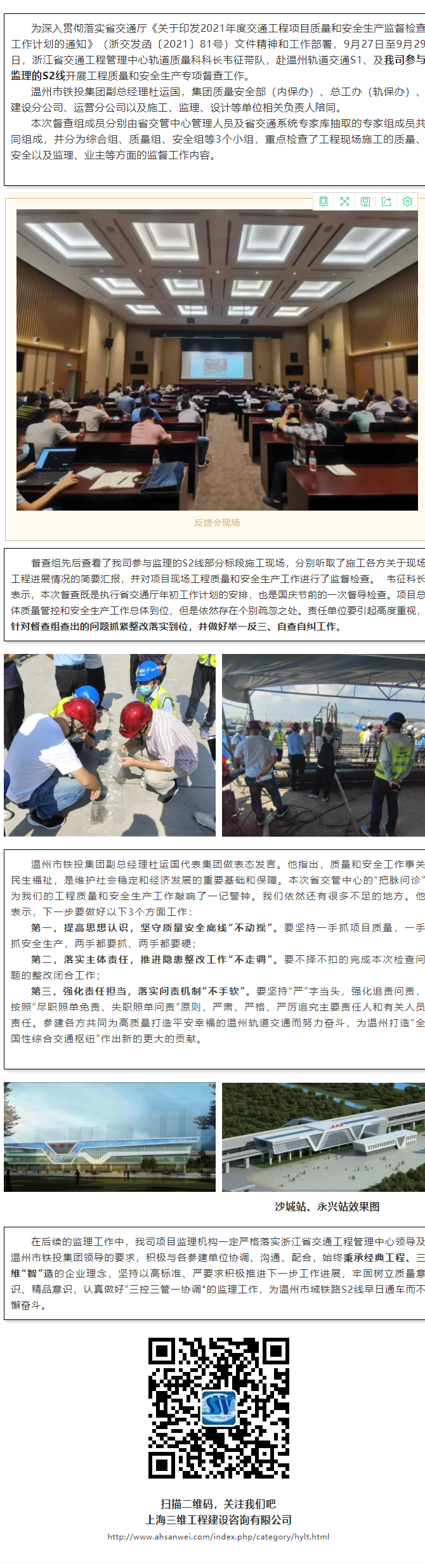 浙江省交管中心督查組赴我司參與監(jiān)理的溫州軌道交通S2線開展專項(xiàng)督導(dǎo)檢查