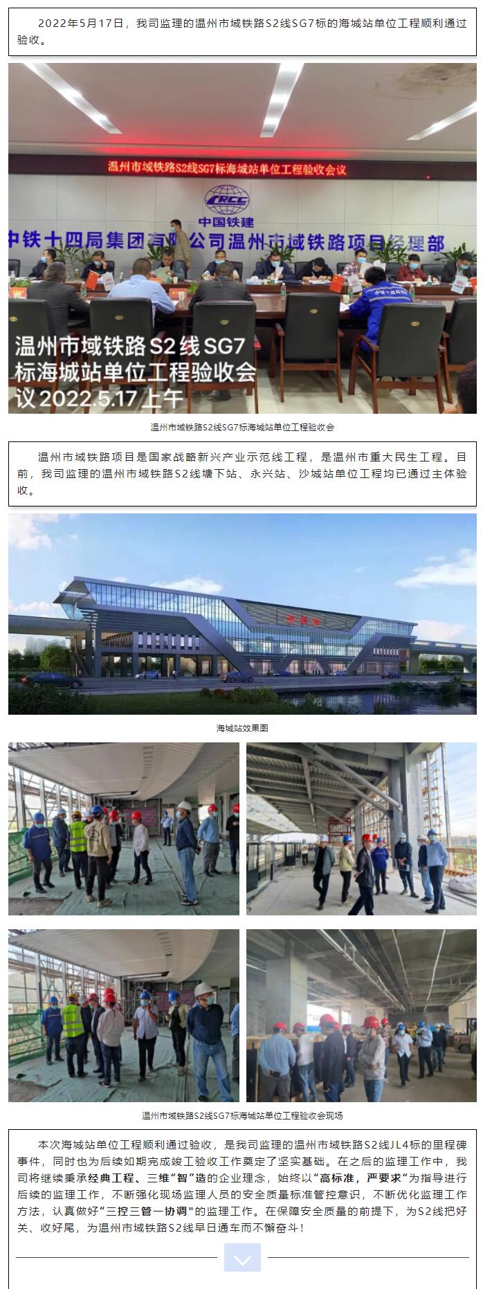 我司監(jiān)理的溫州市域鐵路S2線SG7標(biāo)海城站單位工程順利通過(guò)驗(yàn)收