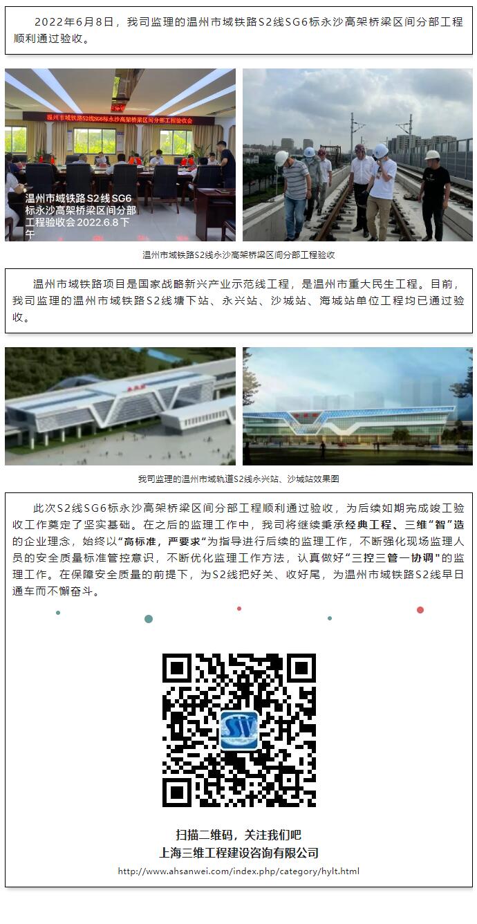 我司監(jiān)理的溫州市域鐵路S2線永沙高架橋梁區(qū)間分部工程順利通過驗收