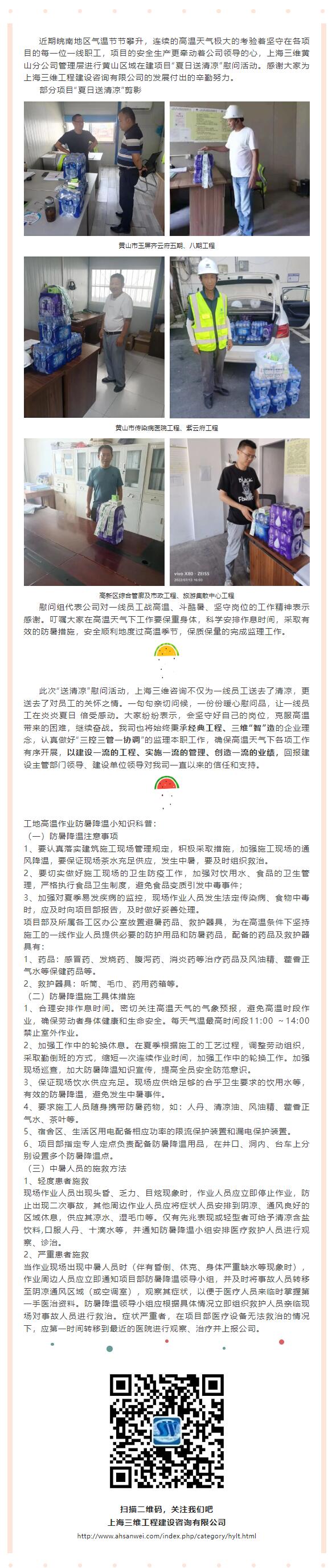 炎炎夏日送清涼 絲絲關(guān)懷暖人心——上海三維黃山分公司開展“夏日送清涼”活動