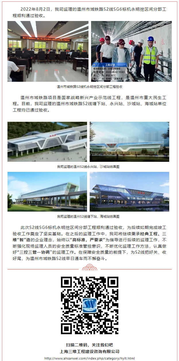 我司監(jiān)理的溫州市域鐵路S2線SG6標機永明挖區(qū)間分部工程順利通過驗收