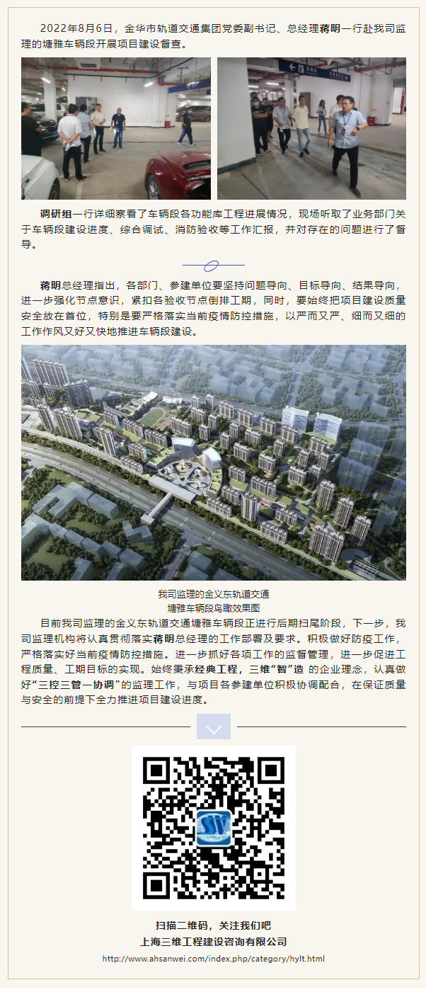 金華市軌道交通集團(tuán)黨委副書記、總經(jīng)理蔣明一行赴我司監(jiān)理的塘雅車輛段開展項(xiàng)目建設(shè)督查