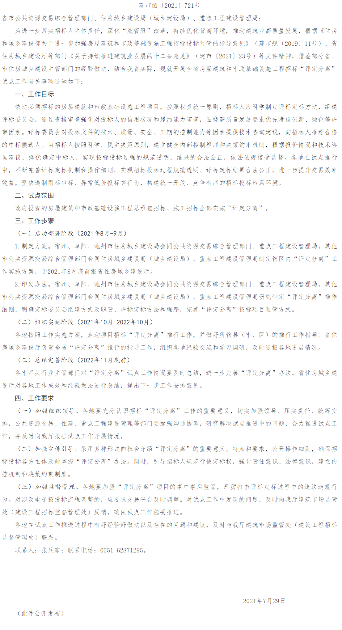 轉(zhuǎn)發(fā):關(guān)于開展全省房屋建筑和市政基礎(chǔ)設(shè)施工程招標(biāo)“評(píng)定分離”試點(diǎn)工作的通知